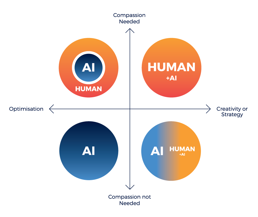 - The more a role requires empathy and trust, the more AI becomes a support layer—not a replacement.